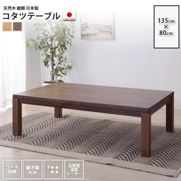こたつテーブル W135 x D80 長方形 コタツテーブル こたつ おしゃれ 冬 炬燵 継脚 KTJ-135 BR/NA