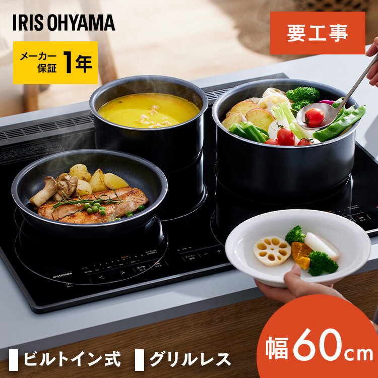 工事費込みも選べる ihクッキングヒーター ビルトイン 3口 60cm ビルトインih ihコンロ ブラック お手入れ 簡単 グリルレス レンジフード連携 アイリスオーヤマ※この商品は適切な電気工...