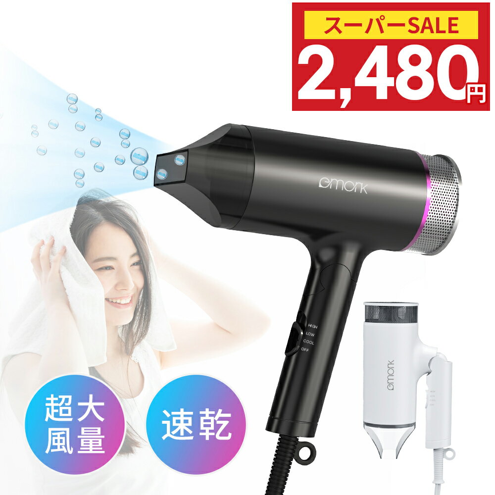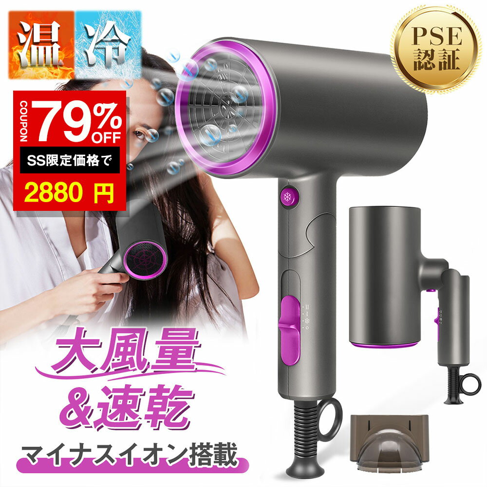 \72%OFF!クーポンで最安2,480円/ドライヤー 大風量 マイナスイオン 温度調節 ヘア ドライヤー 恒温保護 速乾 ノズル付き 低騒音 冷熱風 ヘアドライヤー 折り畳み式 収納 軽い 持ち運び便利 軽量 美容師 ヘアケア サラサラ ヘアサロン ツヤ髪 PSE認証 ギフト