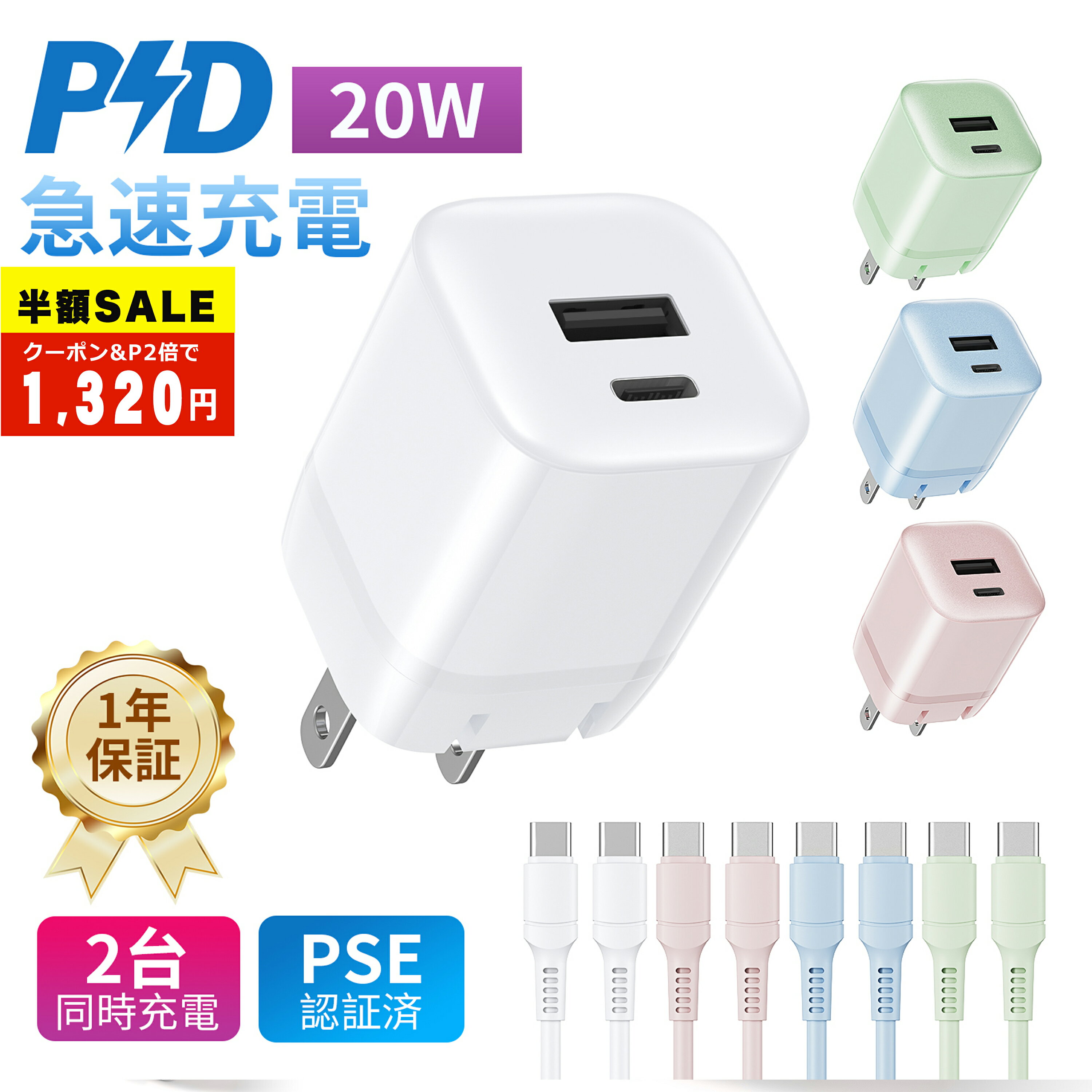 【スーパーSALE!92%OFF】充電器 20W PD 対応 急速充電 Type-C USB-C タイプC 充電器 USB 折りたたみ式プラグ GaN 採用 ケーブル付き 安全保護 国際 海外対応 ACアダプター スマホ 充電器 電源アダプター コンセント iPhone/AirPods 全機種対応