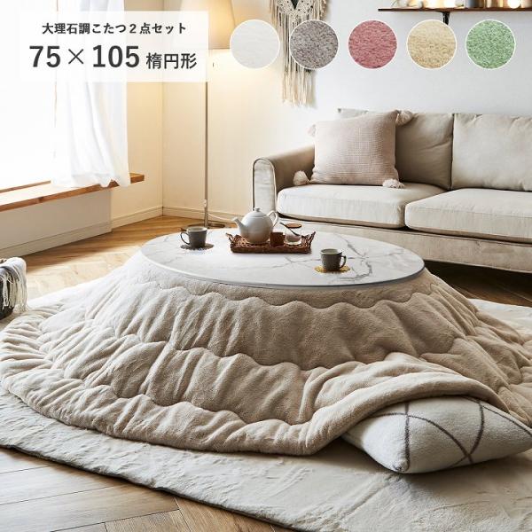こたつセット 楕円形 こたつテーブル こたつ コタツ コタツテーブル こたつテーブルセット おしゃれ 白 丸 楕円 大理石調こたつ ラピアス 2点セット エコ 省エネ