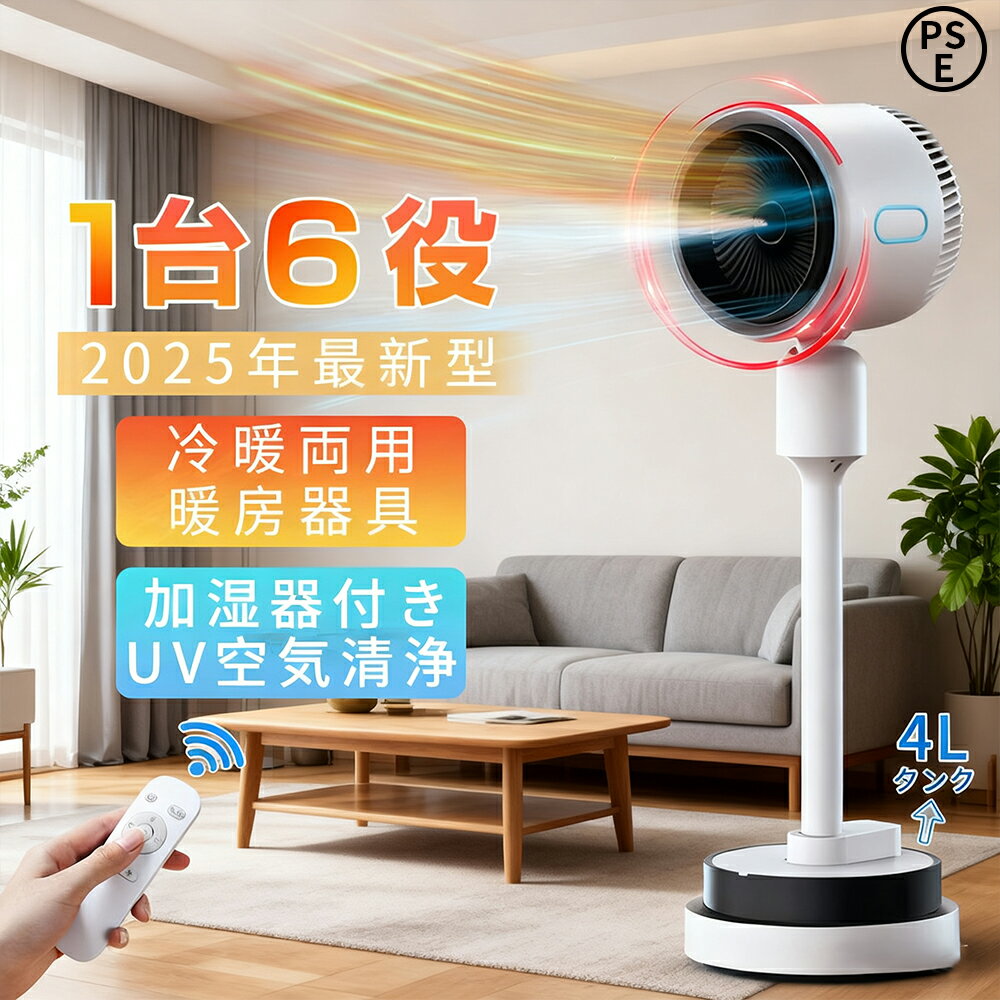 【スーパーSALE 50%OFF★加湿器付き★空気清浄MAX】セラミックヒーター ヒーター 暖房器具 1台6役 DCモーター 加湿器 4L 大容量 セラミックファンヒーター 自動首振り 速暖 風量3段階 羽なし 空気循環 衣類乾燥 転倒OFF 静音 リモコン付き 扇風機 省エネ リビング 2年保証