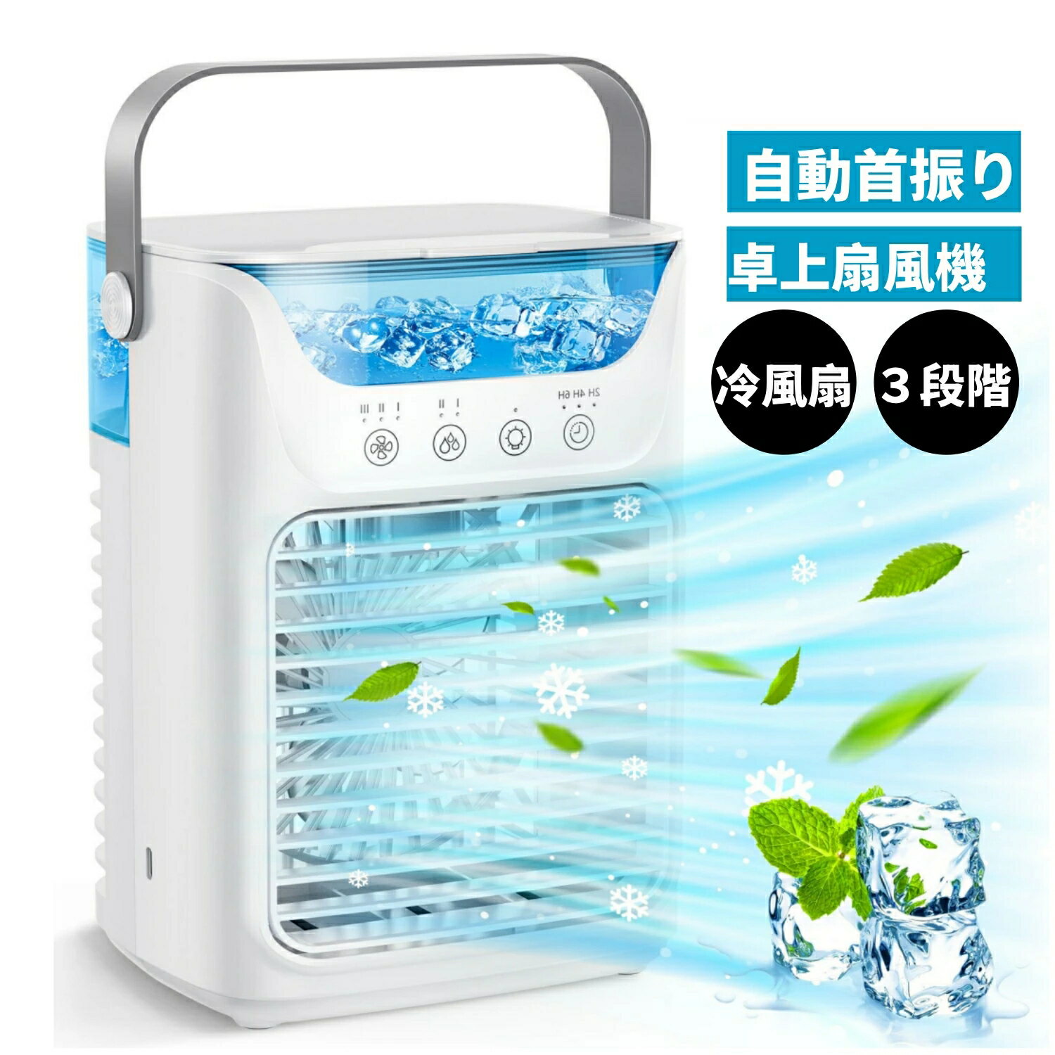 【スーパーSALE限定50%OFF】冷風扇 冷風機 2025年夏新販売 大風量 涼感アップ 送風 加湿 冷却 省エネ 扇風機 卓上クーラー 強力 人気 自動首振り 小型 卓上 ミニクーラー ポータブルエアコン 3段階風量調整 氷いれ可能 LEDライト usb給電 超軽量 静音 ひんやり 熱中症対策