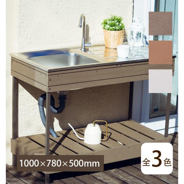 人工木 ガーデンシンク 大サイズ 全3色 おしゃれ アルミ シンク ステンレス 【1000×500×780mm】 流し台 BBQ