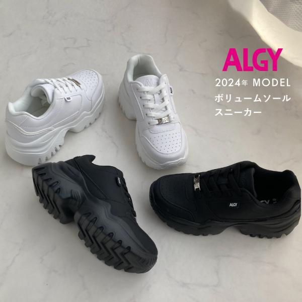 ALGY アルジー スニーカー 厚底 キッズ 5.5cmヒール 女の子 軽量 ボリュームソール ブラック ホワイト 黒 白 ジュニア かわいい シューズ 靴 小学生 送料無料
