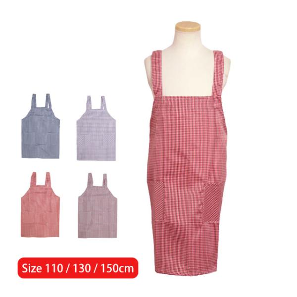 エプロン H型 子供用 キッズ 男の子 女の子 チェック柄 小学校 学校 給食エプロン 子供エプロン キッズエプロン 110cm130cm150cm