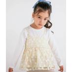 tシャツ 「お揃い」お花レースキャミ+天竺長袖Tシャツ2点セット(80~130cm) キッズ 子供服 男の子 女の子