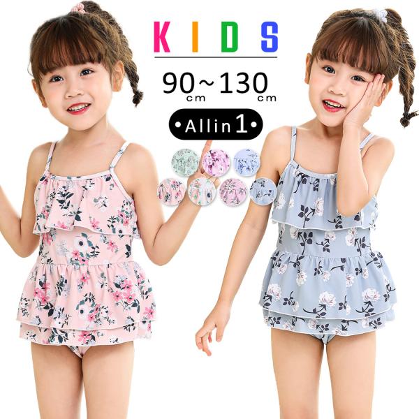 キッズ 水着 女の子 ワンピース オールインワン キャミソール 子ども ベビー ジュニア 白 花柄 ノースリーブ
