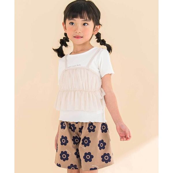 tシャツ チュールキャミソール重ね着フライス半袖Tシャツセット(90~130cm) キッズ 子供服 男の子 女の子