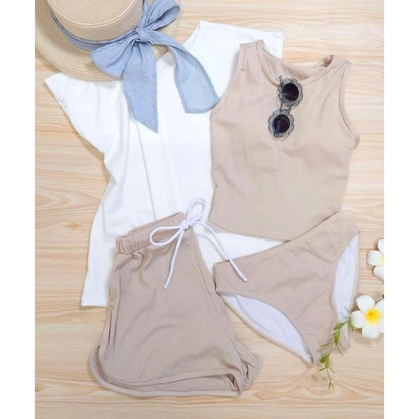 水着 キッズ トップス付き リブ タンキニ 4点セット 水着 セットアップ キッズ 子供 女の子