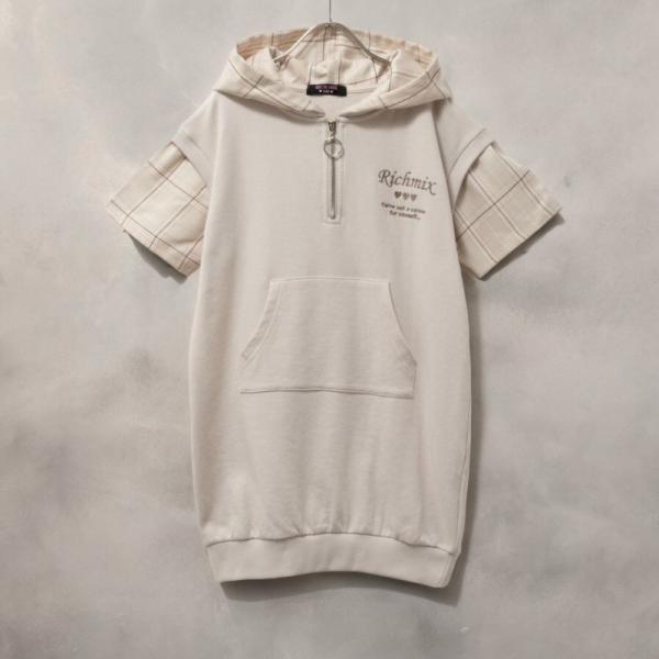 フードと袖のチェック柄がアクセントになった、レイヤード風のドッキングワンピースです。カラーは、ミント・ベージュの2色展開です。淡いカラーがおしゃれで可愛い♪一枚でコー...