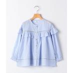 【SALE/50%OFF】ROPE' PICNIC KIDS 【KIDS】リボンディティールラッフルカラーブラウス/リンクコーデ ロペピクニック トップス シャツ・ブラウス ホワイト ブルー