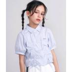 ブラウス シャツ シャーリング切り替えカラミレースストライプシャツ(110~150cm) キッズ 子供服 男の子 女の子