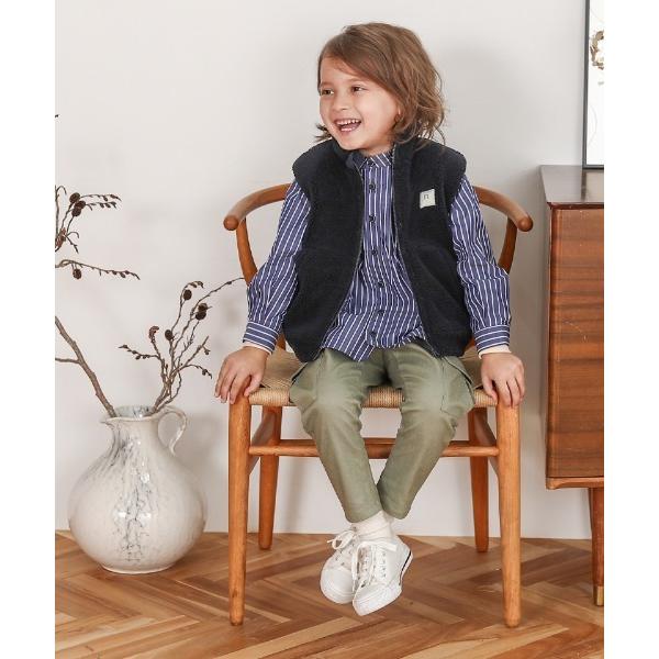 ブラウス シャツ ストライプ・ロゴ刺繍シャツ キッズ 子供服 男の子