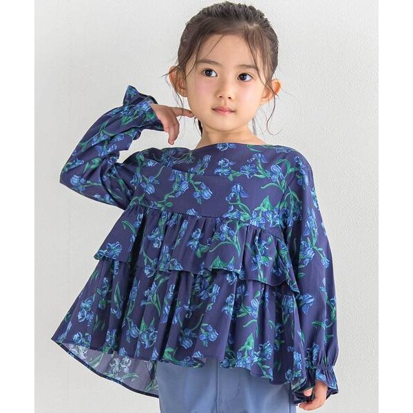 ブラウス シャツ 「お揃い」「リバティプリント」「日本製」フレンチ・アイリスティアードフリルブラウス(90~150cm)