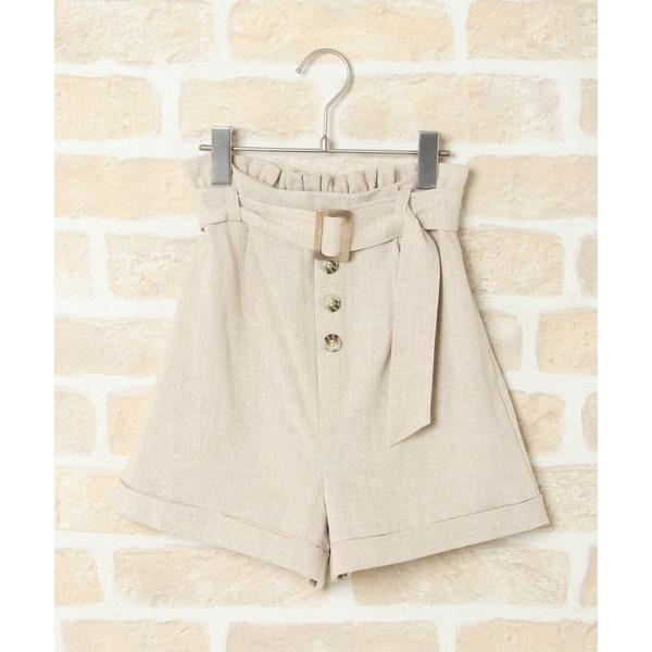 パンツ リネン混ベルト付きロールアップショートパンツ(120~160cm) キッズ 子供服 女の子