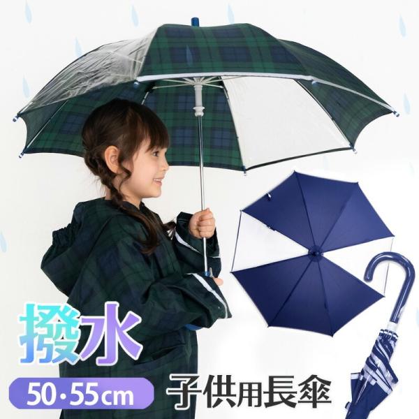 傘 かさ カサ 透明窓ありキッズ 50cm 55cm (50センチ 55センチ) 手開きタイプ 雨傘 アンブレラ 長傘 紺 コン無地 チェック 男の子 女の子 子供用 子供 こども 子ども 小学生 低学年 高学年 幼...