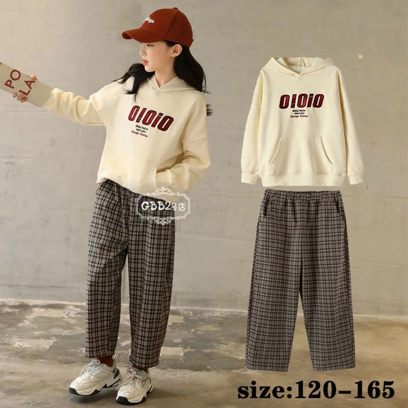 【50%OFFクーポン】韓国子供服 セットアップ 女の子 パーカー チェック柄 長袖 フード付き 上下セット カジュアル キッズ こども 可愛い きれいめ //卒園式/入学式/パーティ 120 130 140 150 160 165 ロングパンツ 秋冬 カジュアル ナチュラル