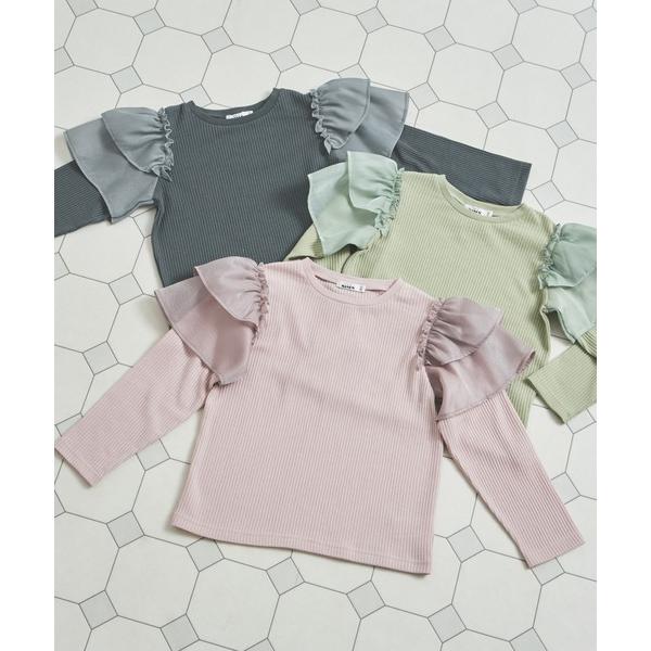 tシャツ ワッフル シアー素材 袖フリル トップス キッズ 子供服 女の子