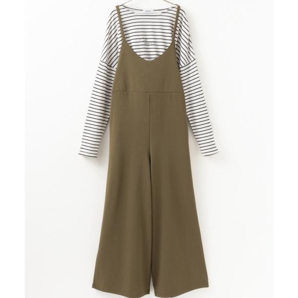 4,999円(税込)以上全国送料無料★☆★-凸凹感やザラザラとした質感が特徴の梨地素材のサロペットと、ルーズシルエットの長袖Tシャツがセットになったアンサンブルです。カラーは、ブ...