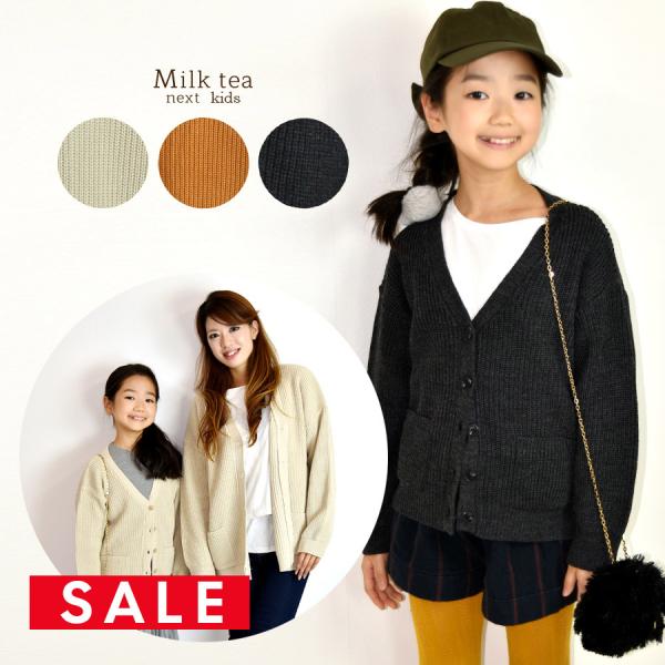 SALE ベビー キッズ ルーズフィットVネックニットカーディガン 親子リンクコーデ キッズ ベビー 子供服 アウター トップス