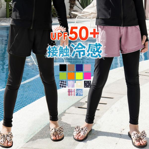 メール便送料無料 水着通販ストア キッズ 水着 レギンス ショートパンツ 一体型 プール 女の子 ジュニア ラッシュガード パンツ 単品 子供 接触冷感 UPF50+ おしゃれ かわいい 黒 裏地付...