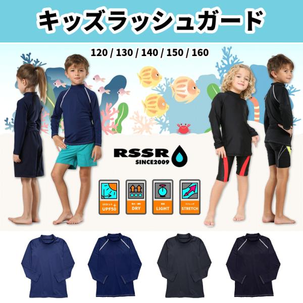 ラッシュガード キッズ スクール 学校用 フードなし ファスナーなし 指穴なし 長袖 かぶり ジュニア 子供 ハイネック 無地 紺 黒