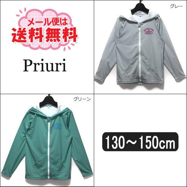 ラッシュガード 女の子 ジュニア 795982 フード付 ストライプ柄 長袖 ラッシュガード グリーン グレー 130cm 140cm 150cm Priuri プリウリ