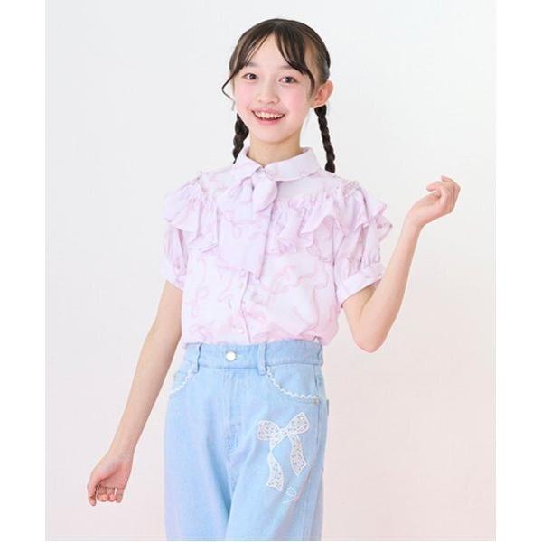 ブラウス シャツ 「ニコプチ・Cuugal掲載」リボン柄ボウタイつきフリルブラウス キッズ 子供服 女の子