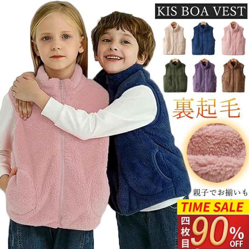 \SS!MAX'90%OFF/★ ベスト ボアベスト キッズ ジュニア 子供用 女の子 男の子 親子ペア トップス ノースリーブ 袖なし ポケット フロントジッパー ジップアップ ボア 単色 無地 シンプル 暖かい あったか ぬくぬく 合わせやすい 着回し力 お洒落