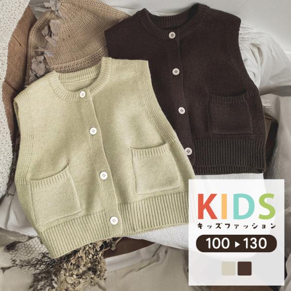 ベスト ニット キッズ 男の子 女の子 兼用 子ども ジュニア トップス インナー 羽織 ライトアウター 防寒 秋冬