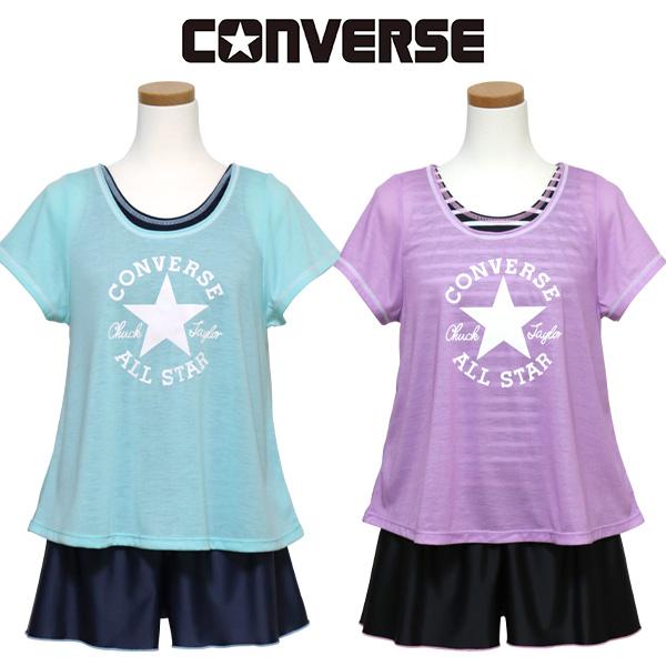 水着 ジュニア キッズ 女の子 CONVERSE コンバース (373188) セパレート Tシャツ付き 140 150 160 170cm 小学生 中学生 高校生 女子 スクール水着 キュロット