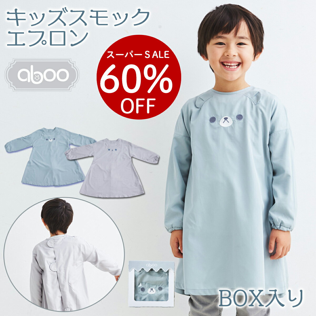 \aboo閉店セール!スーパーSALE限定50%OFF+クーポン配布/アブー スモック【送料無料】キッズ プレイウェア 遊び着 入園祝い おしゃれ 箱入り ギフト 長袖 子供 エプロン お手伝い お絵描き 粘土遊び お揃い アニマル どうぶつ 保育園 幼稚園 100 120 130 くま ねこ