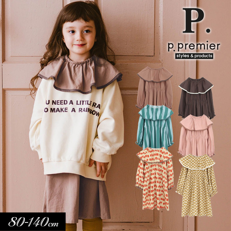 ≪50%OFF!セール≫2024秋冬【p.premier/p.プルミエ】イロチ買いしたい 衿フリル ワンピース≪80cm 90cm 100cm 110cm 120cm 130cm 140cm≫キッズ スカート ベビー シンプル かわいい 綿 エフオー FO DAY1