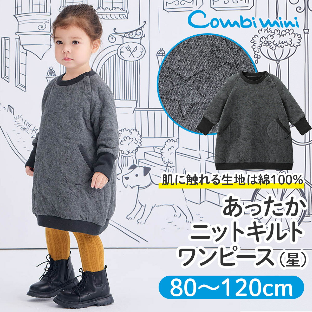 【50%OFF】《コンビミニ》あったかニットキルトワンピース(星) : 女の子 80cm 90cm 100cm 110cm 120cm | ベビー キッズ服 子ども 秋冬 秋服 冬服 秋 冬 子ども 子供 服 お出かけ 長袖 キッズ 服 お揃い 姉妹 リンクコーデ セーター ブランド キルト 星【プレゼント】