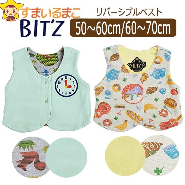 【50%off SALE】【BIT'Z ビッツ】B135010◇リバーシブル2柄ベビーベスト◇無地と総柄のリバーシブルでとっても便利♪【ベビー&キッズ服】◎メール便可