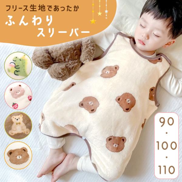 スリーパー ベビー キッズ ふんわり 袖なし 1歳 2歳 3歳 冷え防止 寒さ対策 出産祝い 90 100 110サイズ 冬 保温性 あったか スナップボタン ポイント消化