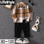 【リニューアルセール】子供服 チェックシャツ 上下セット 冬服 男の子 長袖 キッズ 2点セット 春 冬 秋 80 90 100
