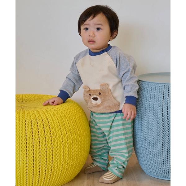 ベビー服 ロンパース クマ長袖Tシャツ×ボーダーパンツセット