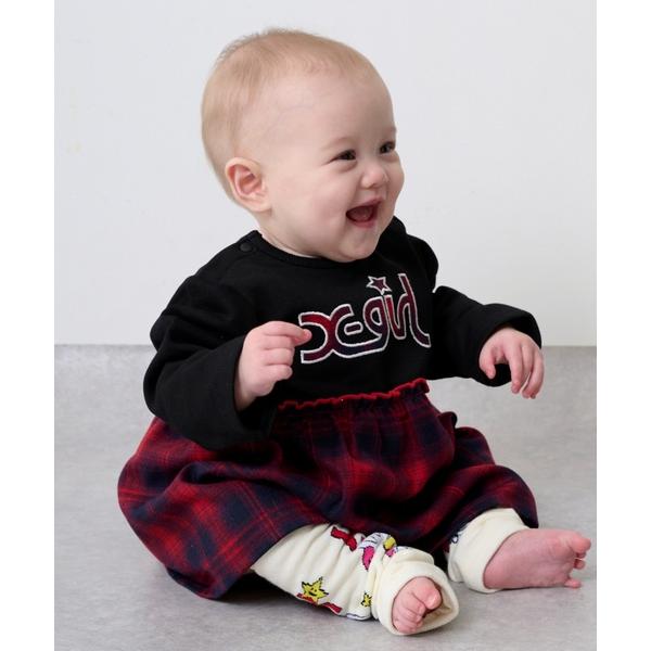 ベビー服 ロンパース チェックロゴワンピース風カバーオール