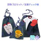 超撥水 防水加工 巾着 3点セット シューズバッグ 体操服袋 小物入れ 給食袋 コップ入れ ミニポーチ 巾着袋 ブラックウォッチ チェック柄 巾着袋