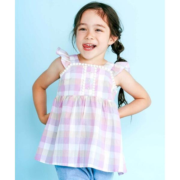 ブラウス シャツ マドラスチェック肩フリルチュニック(90~130cm) キッズ 子供服 男の子 女の子