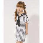 ブラウス シャツ リボンタイドッキングボーダーワンピース キッズ 子供服 女の子