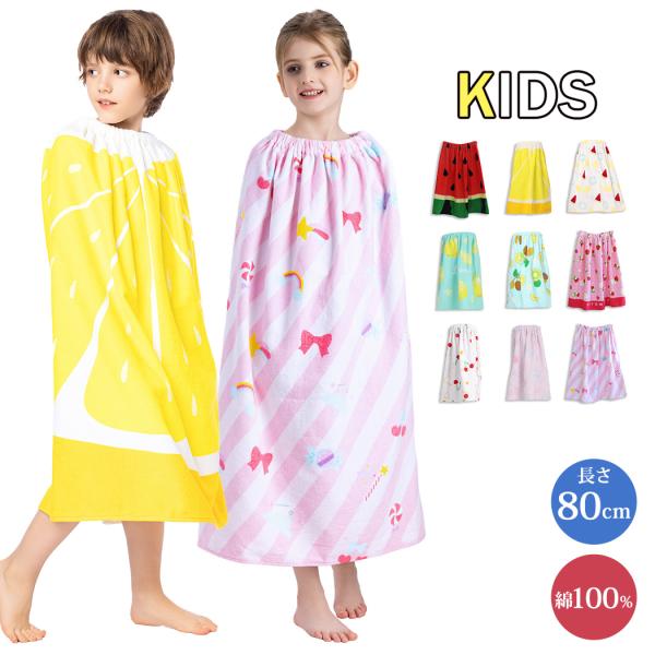 ラップタオル 80cm キッズ 女の子 男の子 プール 小学生 子供用 巻き バス 着替え ウエストゴム