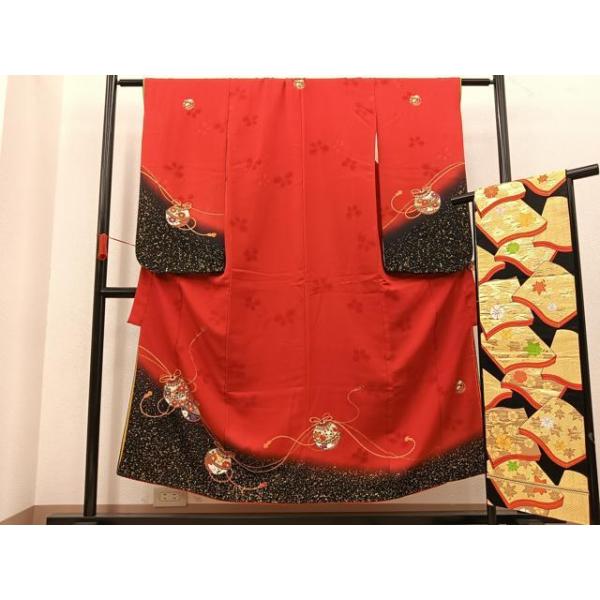 平和屋着物∵女の子 十三参り 子供 祝着・袋帯セット 帯セット 手毬花文 金彩 逸品 BAAT2964mz
