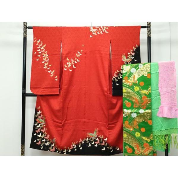 平和屋本店■極上 女の子 十三参り 子供 祝着・袋帯・しごき・帯揚げセット 総絞り 駒刺繍 舞蝶文 暈し染め 金彩 逸品 CZAA3765s5