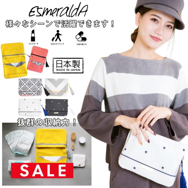 SALE ベビー キッズ Esmeralda エスメラルダ ダイバークラッチ おむつ おしりふきケース 日本製 1点までネコポス可 マルチケース 兄弟 姉妹 マタニティ