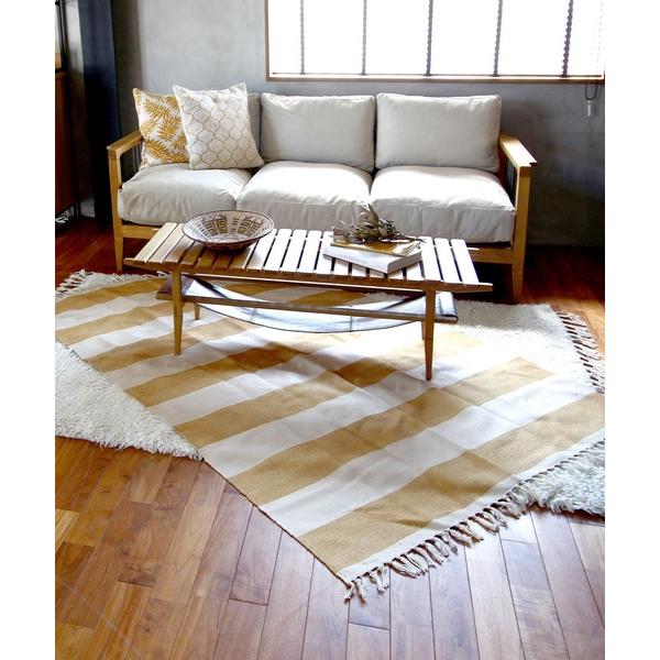 ラグ ラグマット Re:PET boarder rug MUSTARD / リサイクルラグ エコ ペットボトル素材