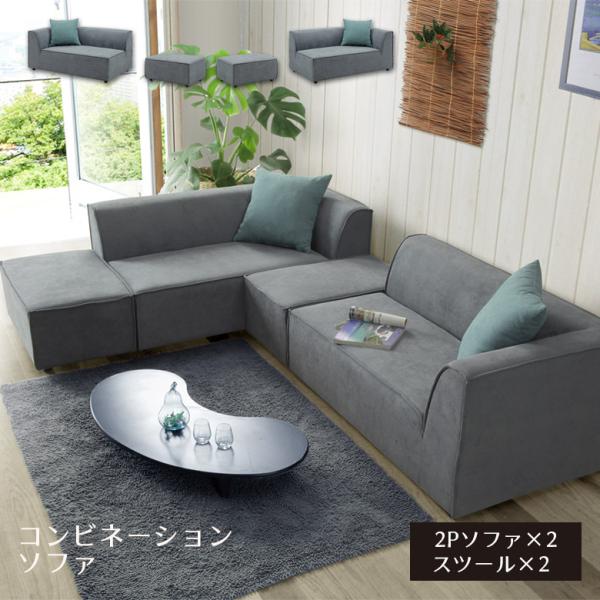 ソファ ソファー クッション付き ソファセット 北欧 おしゃれ シンプル モダン 2人掛け 3人掛け 大型 カウチソファ スツール 幅150cm ベージュ グレー 三人掛け