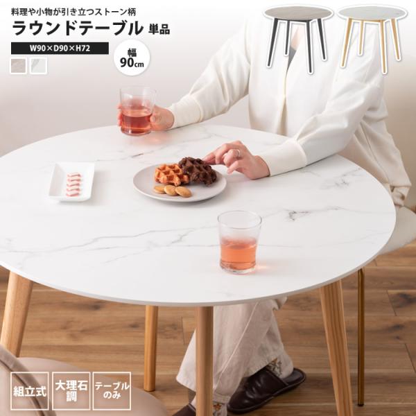 ダイニングテーブル 大理石調 おしゃれ 幅90 ラウンドテーブル 円形 丸型 2人用 丸テーブル 食卓 TAP-201 GY/WH ラウンドテーブル